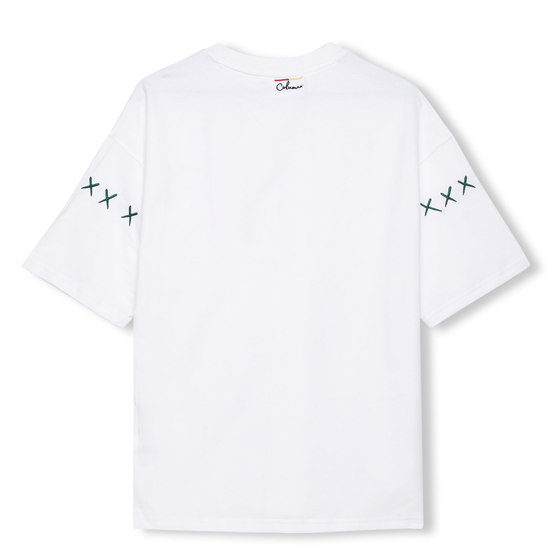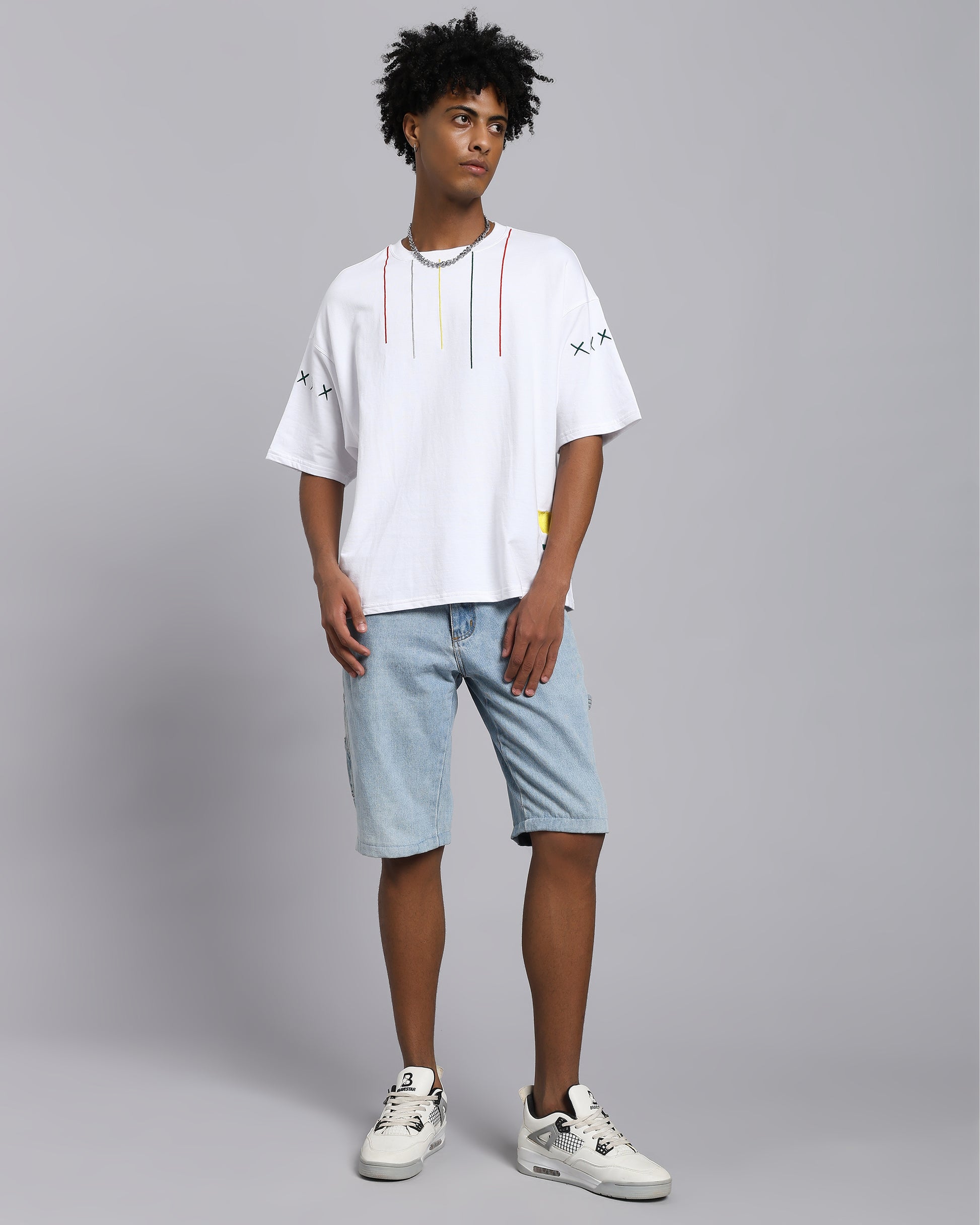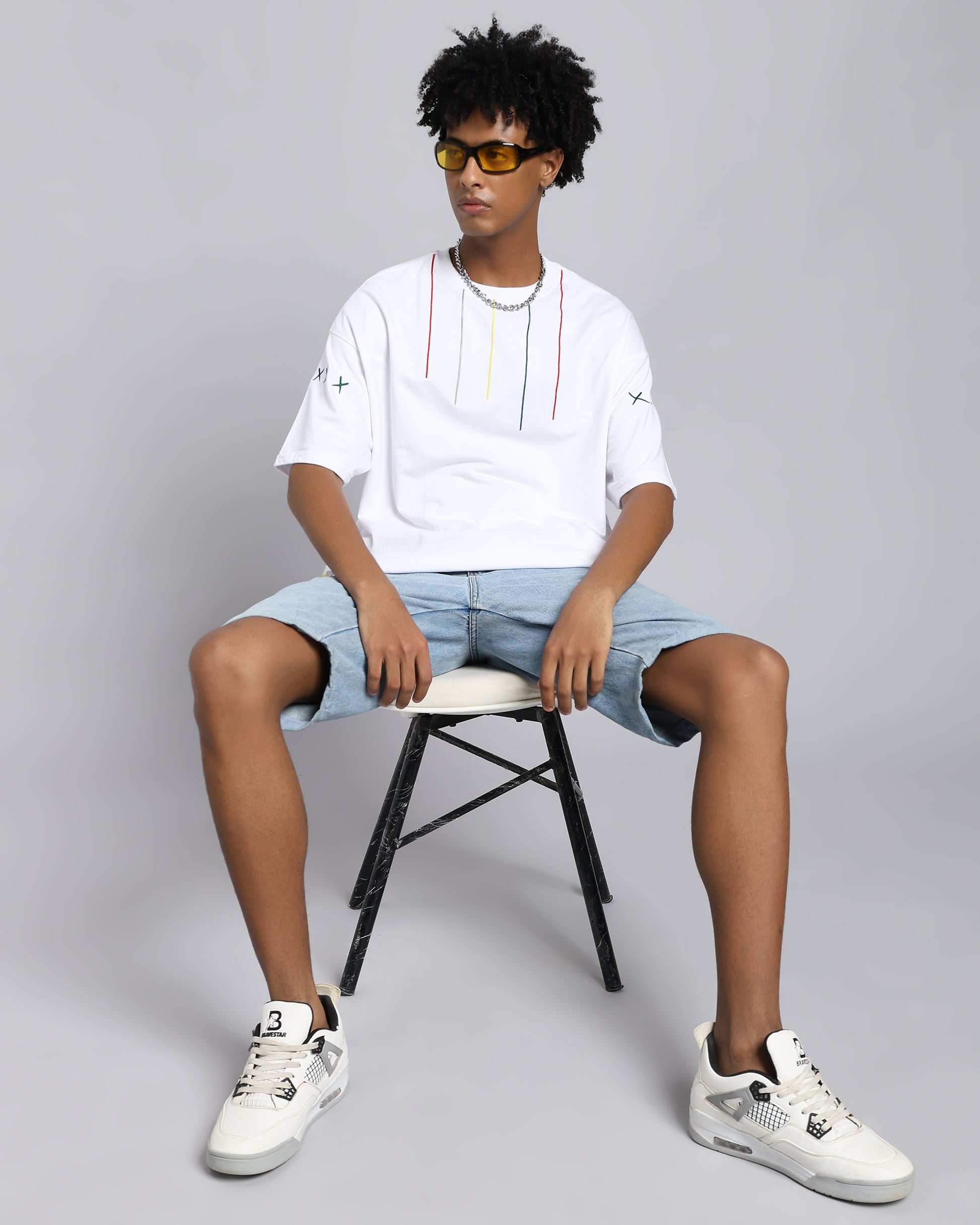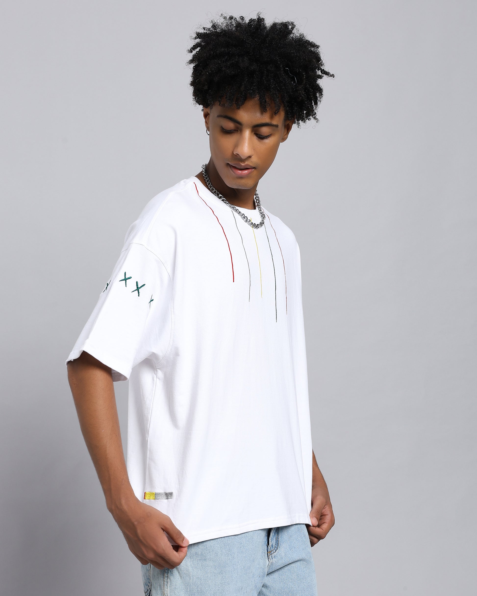 This one has a minimalist, modern-art vibe with its clean white base, colorful vertical lines, and small geometric accents. It feels sleek and abstract — almost like wearable art. All embroidered with perfection.